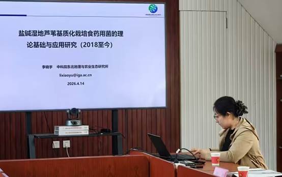为促进湿地资源循环利用与食用菌产业的交叉创新,2026年4月14日下午,滨海生态高等研究院特邀中国科学院东北地理与农业生态研究所李晓宇研究员,为研究院师生作了题为《湿地芦苇基质化栽培食用菌的理论基础与应用研究》的学术报告。学院相关专业教师及研究生代表共同聆听了讲座。