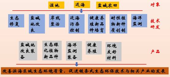 区位特色:在研究区位上,充分体现了滨海特色,总体上按照近海-岸线-湿地-盐碱地进行布局,针对各部分的主要问题开展研究,解决滨海生态环境问题,服务于国家生态文明的国家战略和山东省新旧动能转换重大工程。